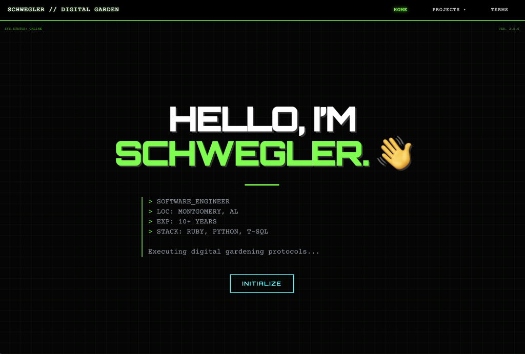 I’m Andrew (usually called schwegler most of the time) and I figured I’d start to use it to share things I’ve made and done elsewhere.